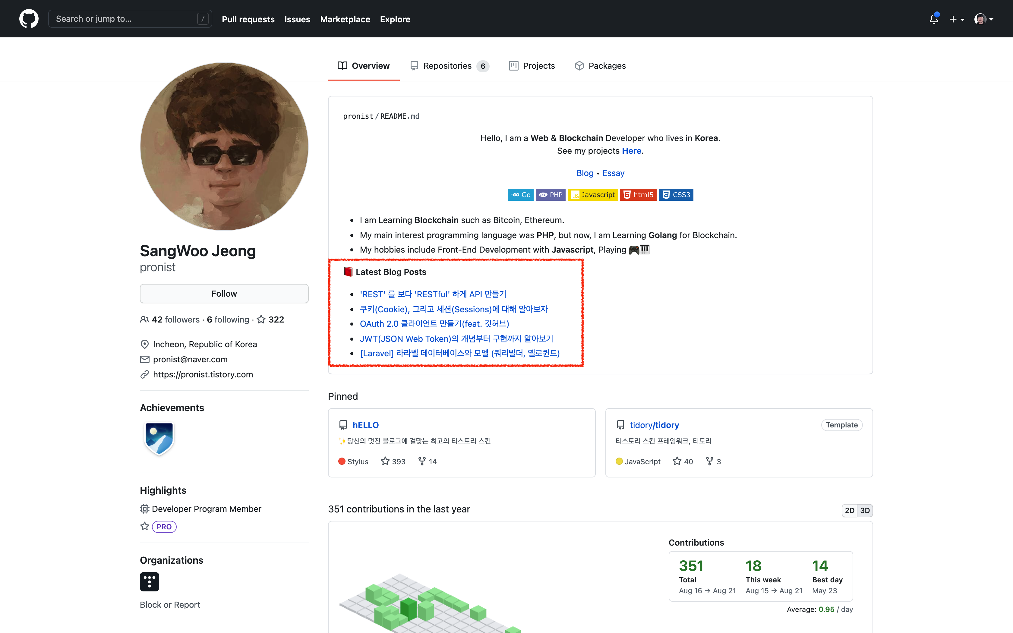 티스토리 블로그 스킨을 알아보던 중 heLLO라는 스킨을 만든 분의 GitHub 프로필에서