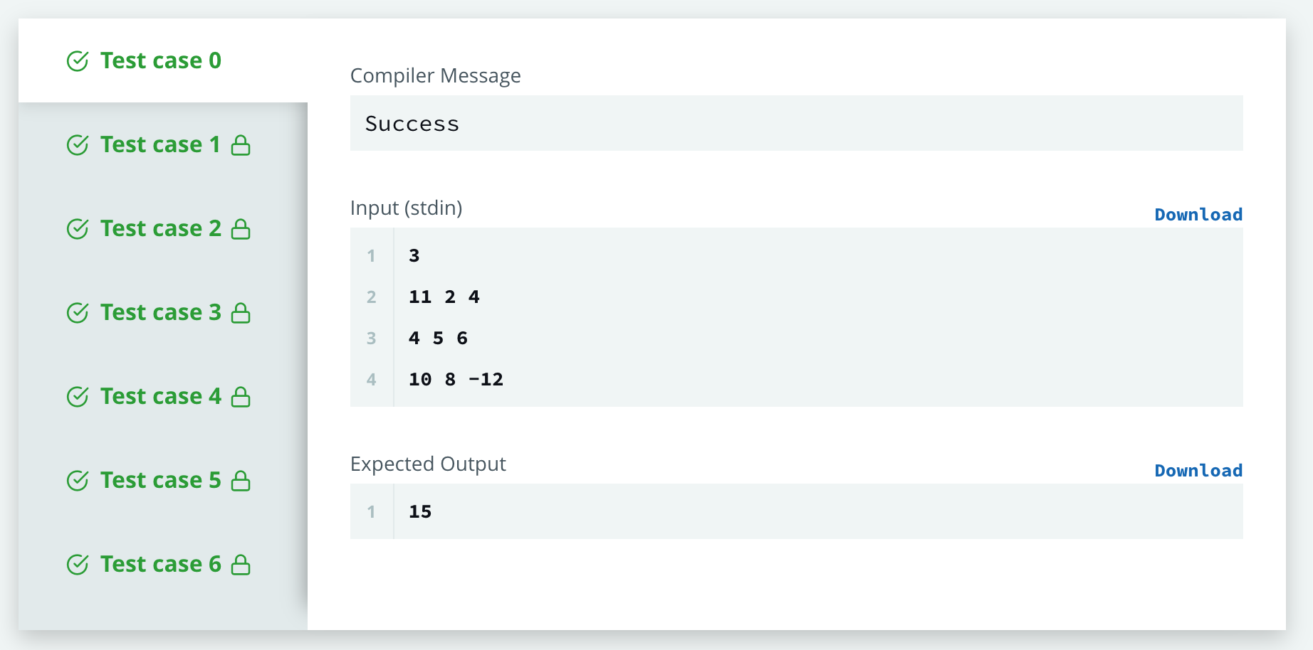 Each of the next n lines describes a row, arr [ i ], and consists of n space-separated integers arr [ i ][ j ].
