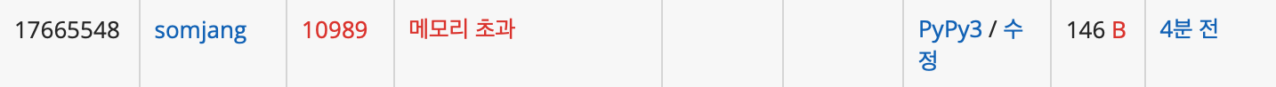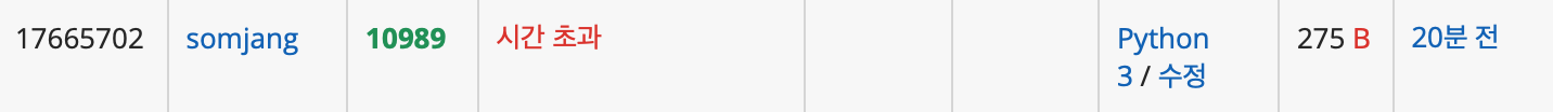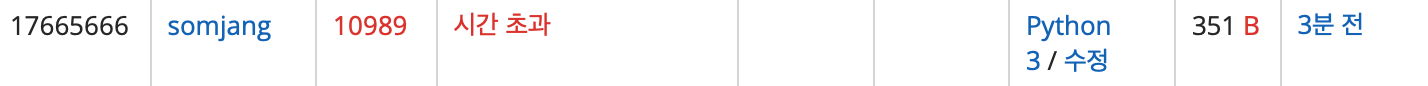 뭔가 정렬하는 부분에서 시간초과와 메모리 초과가 발생하지 않았나 생각되는 부분입니다.