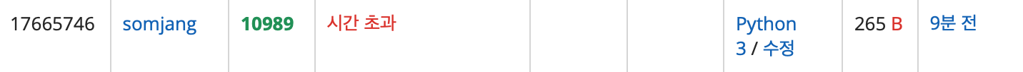 [BaeKJoon] 10989번: 수정렬하기 3 (Python) 본문