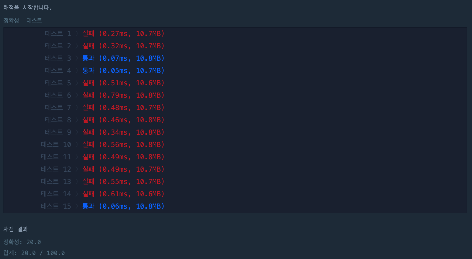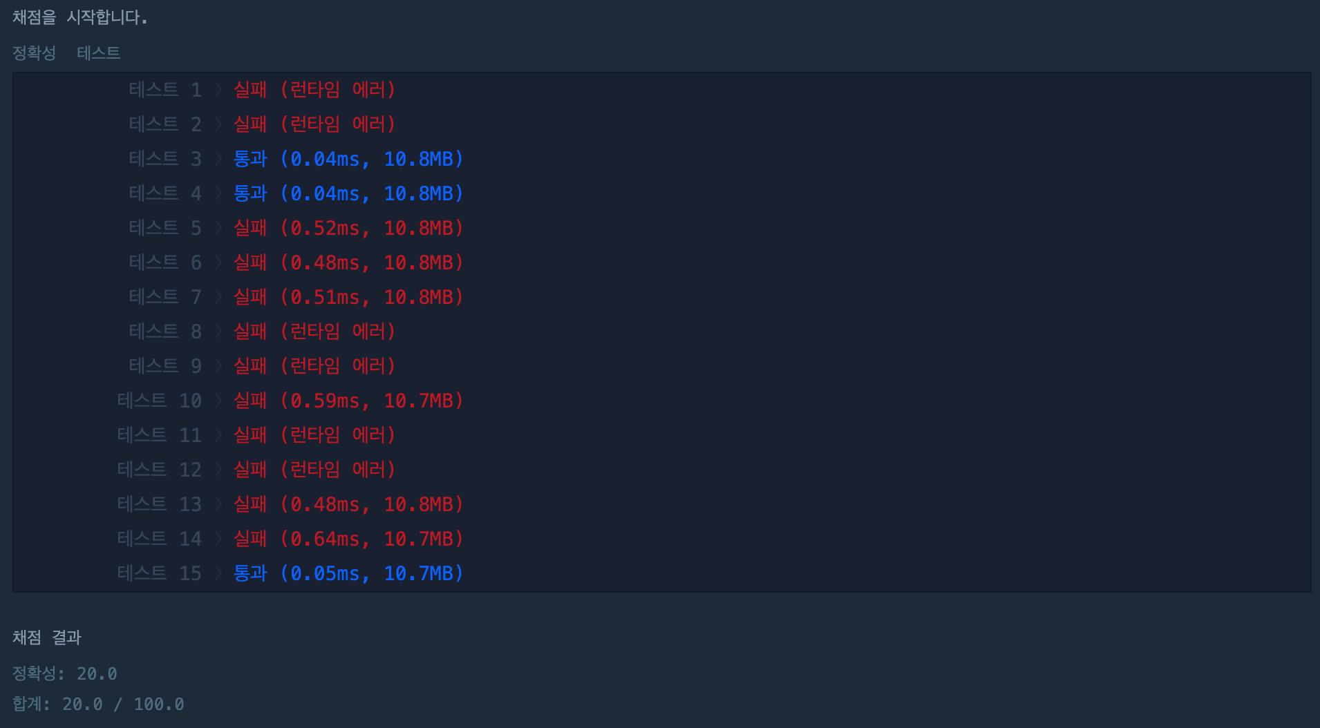 두 번째 런타임 오류때 파악을 했어야했는데 그러지 못한게 아쉬웠던 문제입니다.