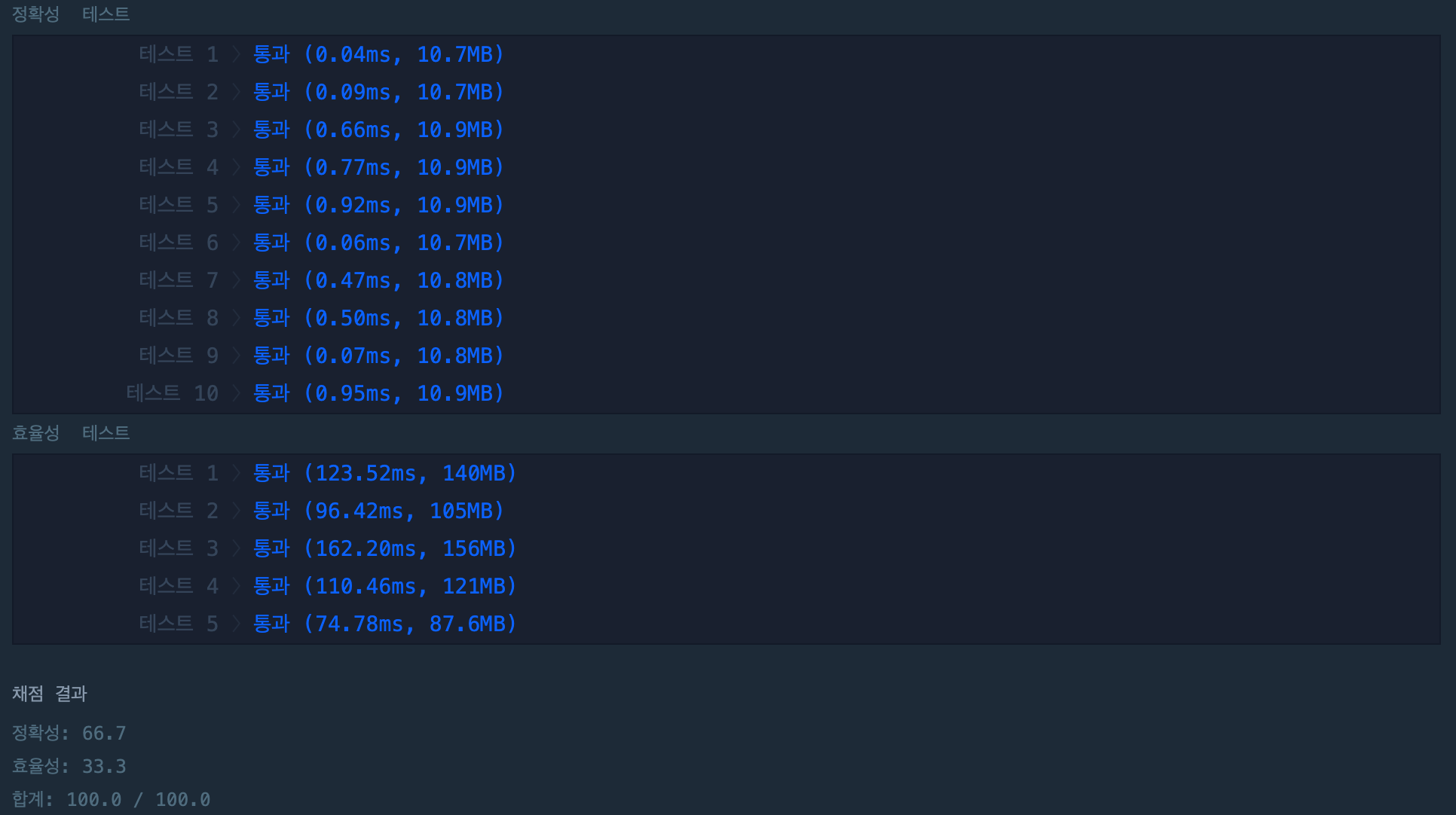 효율성 부분에서 막힐 줄 알았는데 통과가 되었습니다.