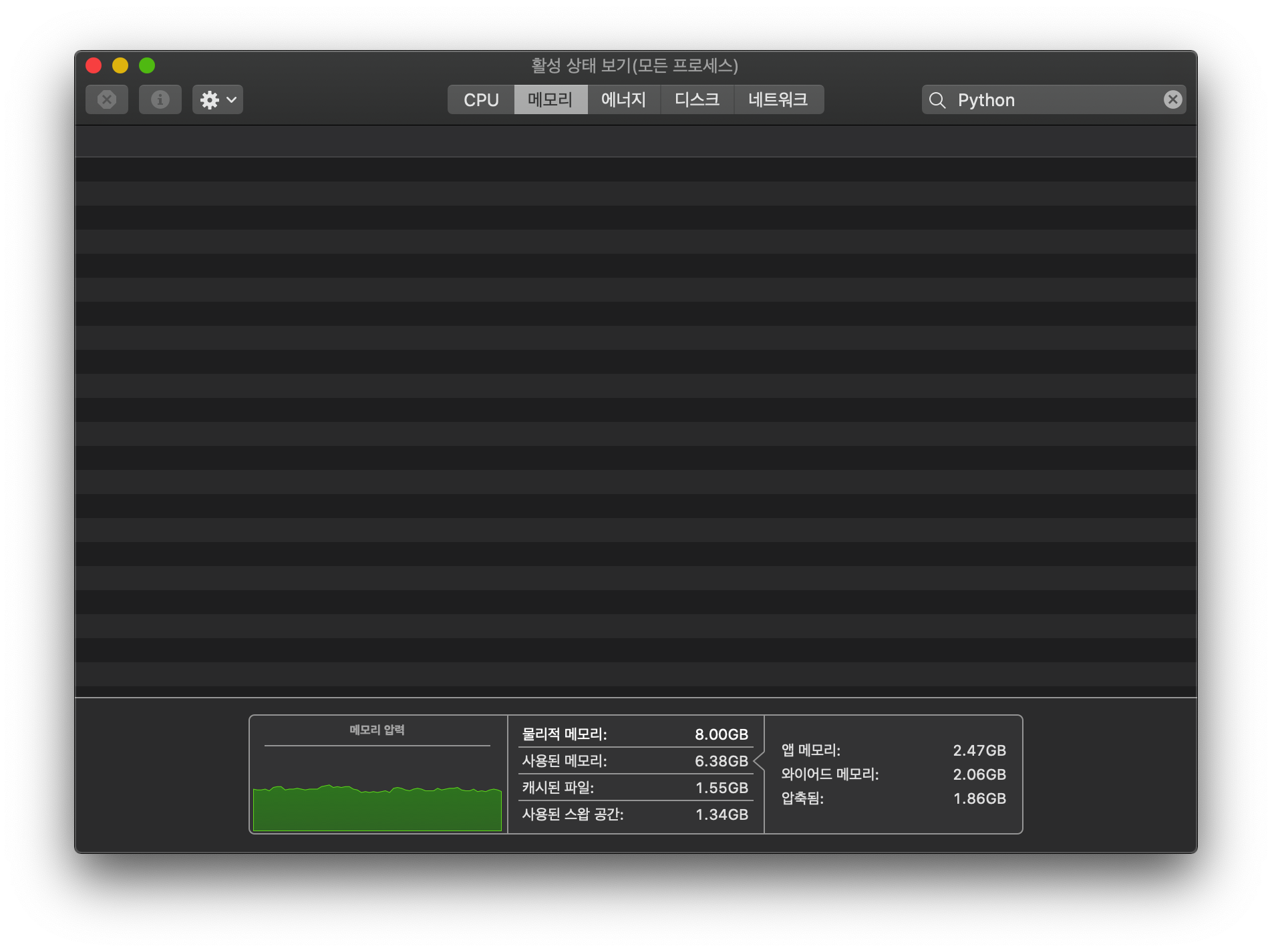 터미널 사용이 어려운 분들은 Mac OS에 기본으로 제공되는 활성상태보기를 활용하시면 됩니다.