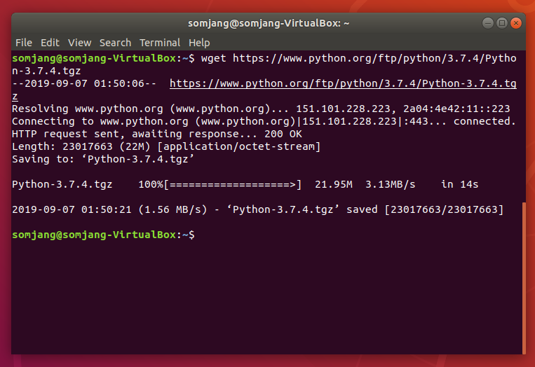 $ wget https://www.python.org/ftp/python/3.7.4/Python-3.7.4.tgz