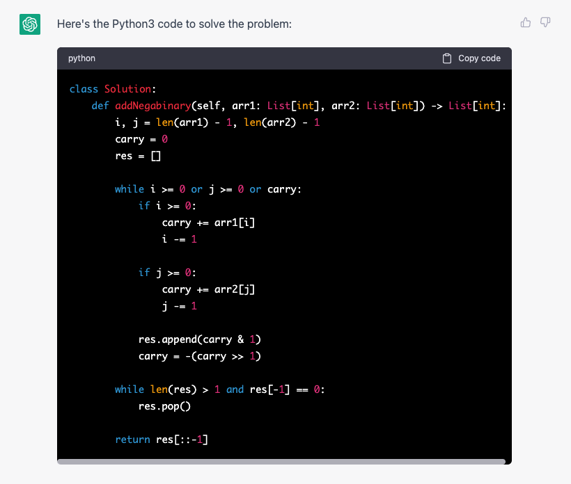 [leetCode] 1073. Adding Two Negabinary Numbers (Python) (feat.ChatGPT) 본문