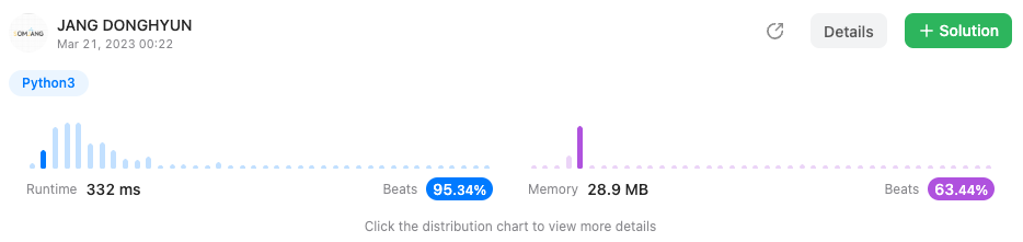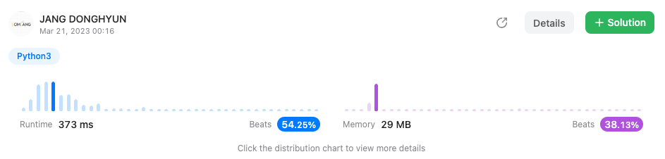 ChatGPT 가 푼 결과는! 제가 풀었던 것보다 41ms 더 빠르고 메모리를 0.8MB 덜 사용했습니다.