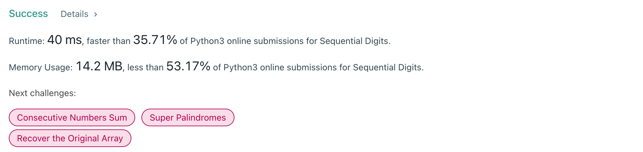 코딩 1일 1문제! 오늘의 문제는 leetCode의 Sequential Digits 입니다.