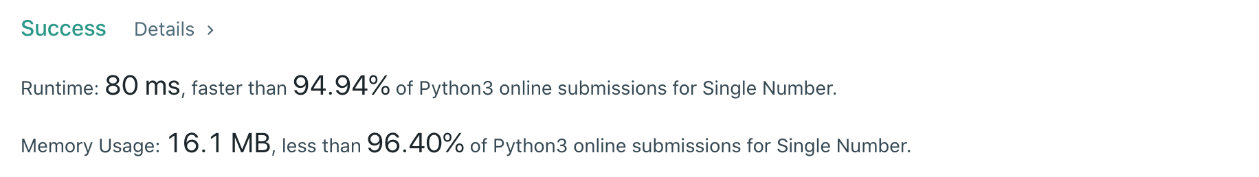 Given a non-empty array of integers, every element appears twice except for one. Find that single one.