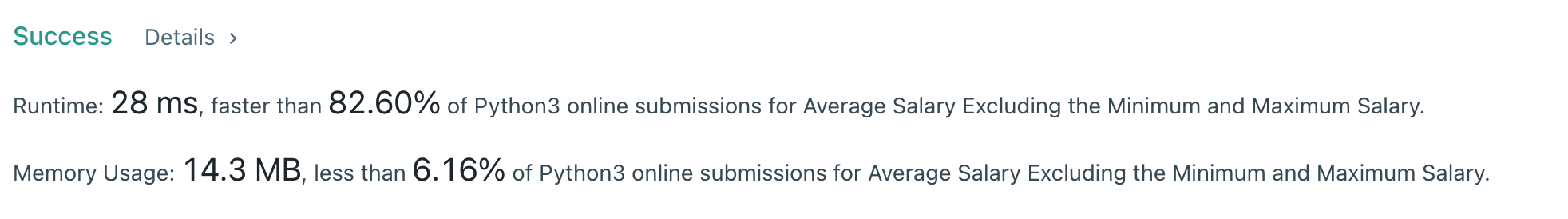 [leetCode] 1491. Average Salary Excluding the Minimum and Maximum Salary (Python) 본문
