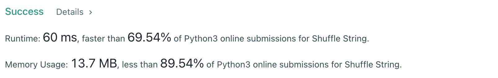 Input: s = "codeleet", indices = [4,5,6,7,0,2,1,3]