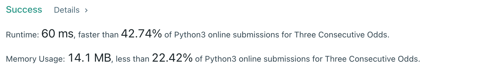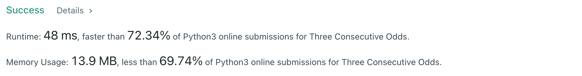 [leetCode] 1550. Three Consecutive Odds (Python) 본문
