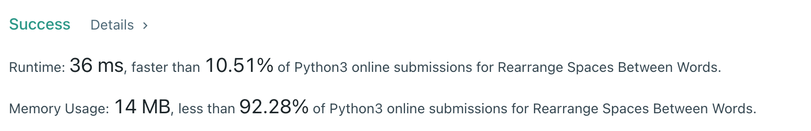 [leetCode] 1592. Rearrange Spaces Between Words (Python) 본문