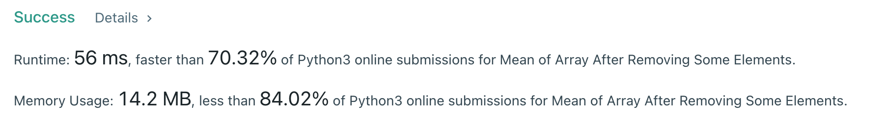 [leetCode] 1619. Mean of Array After Removing Some Elements (Python) 본문