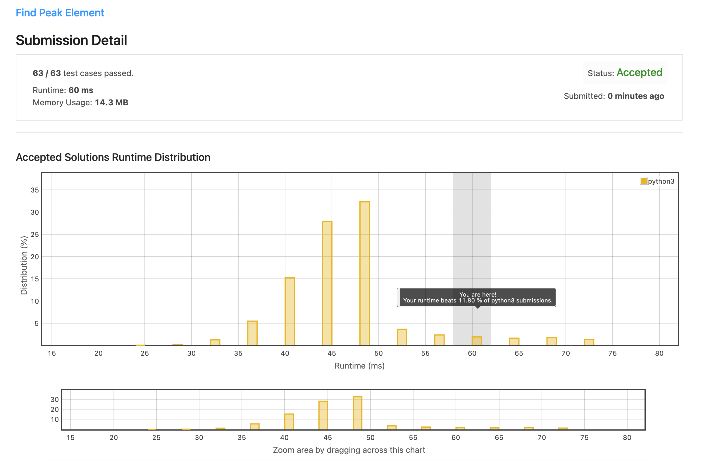 전체 리스트의 절반 길이만큼 반복문을 실행하며 peak_num이랑 맞는 숫자가 나오면 해당 인덱스를 정답으로 합니다.