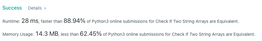 [leetCode] 1662. Check If Two String Arrays are Equivalent (Python) 본문