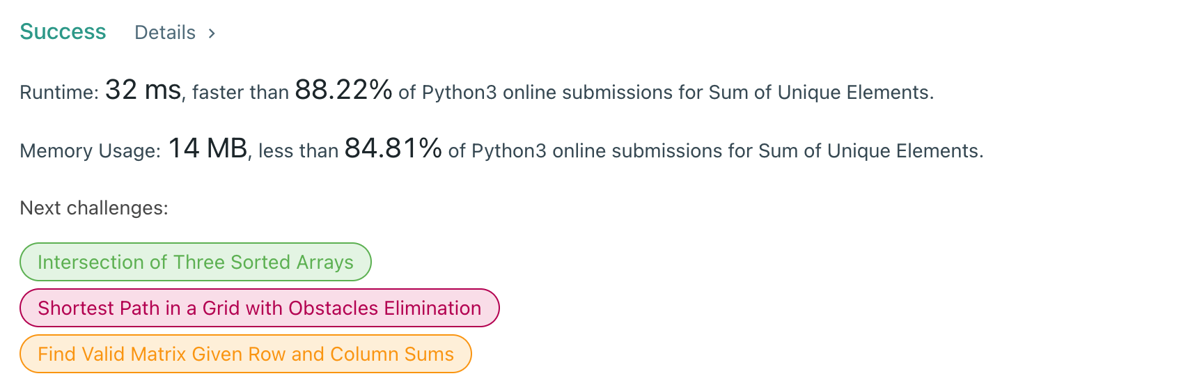 [leetCode] 1748. Sum of Unique Elements (Python) 본문