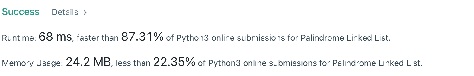 [leetCode] 234. Palindrome Linked List (Python) 본문