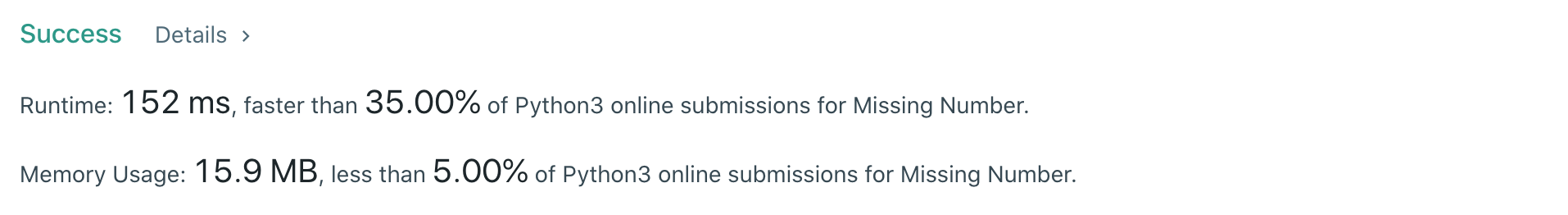 Given an array containing n distinct numbers taken from 0, 1, 2, ..., n, find the one that is missing from the array.