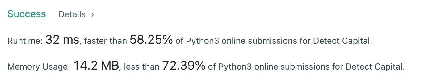 Given a word, you need to judge whether the usage of capitals in it is right or not.