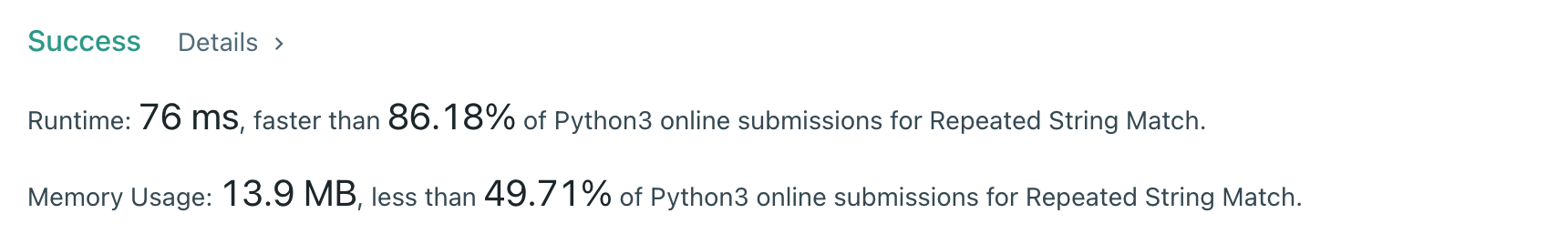 Explanation: We return 3 because by repeating a three times "abcdabcdabcd", b is a substring of it.