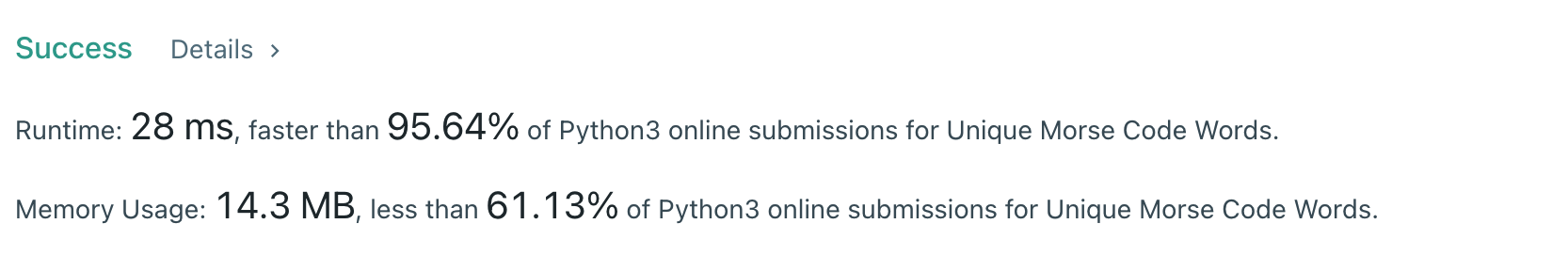 def uniqueMorseRepresentations(self, words: List[str]) -> int: