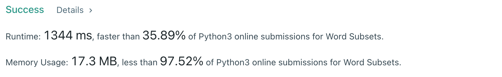 - All words in A[i] are unique: there isn't i != j with A[i] == A[j].